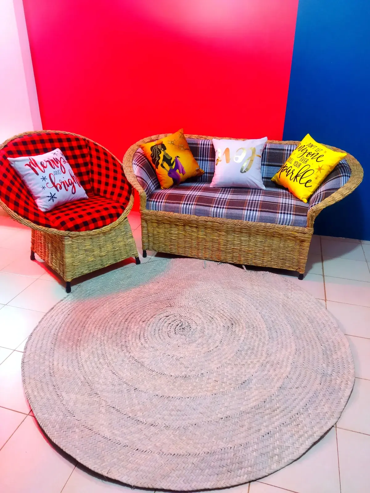 Round Mikeka are skilfully made from doum palm leaves found in Tharaka, in Eastern-Kenya. T in different sizes and come in the natural colour, with colour-patterns added upon request by our clients.Common sizes: 3ft, 5ft, 5.5ft, 6ft,